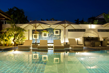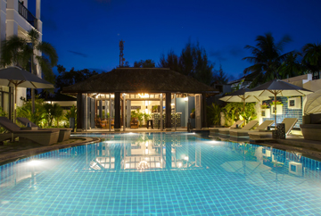 Deluxe rooms come with terrace views and opening windows and views over the large central pool and tropical gardens.